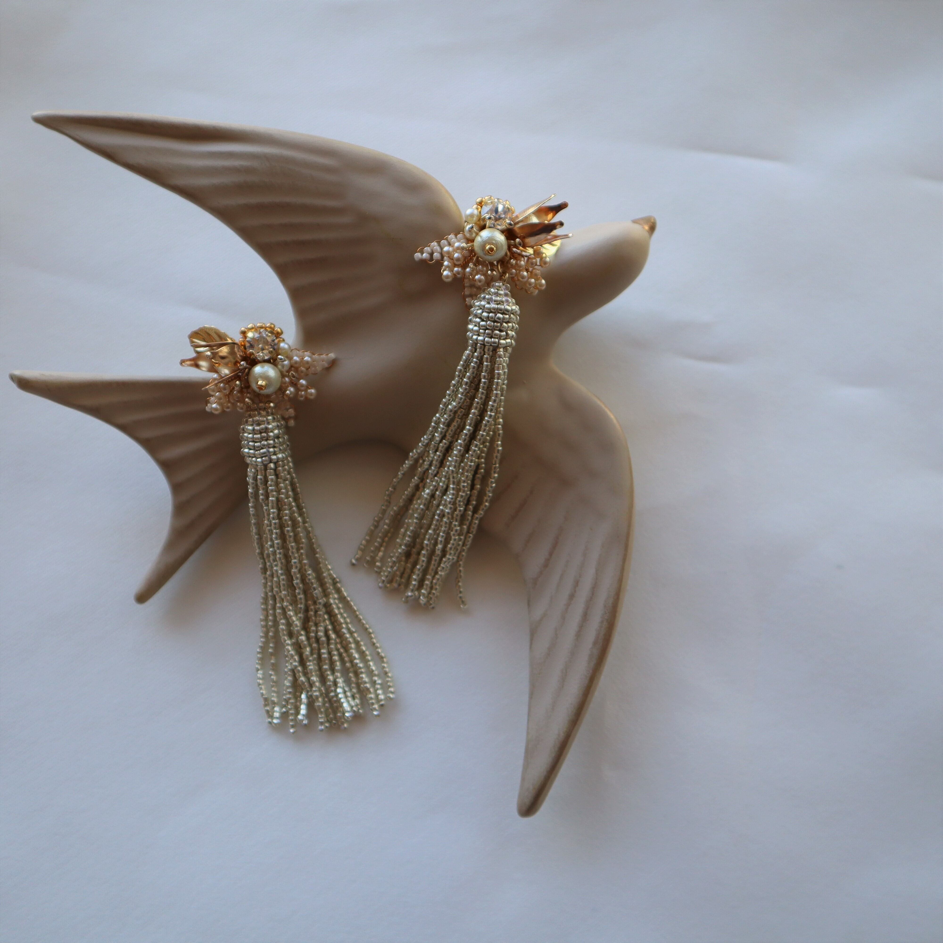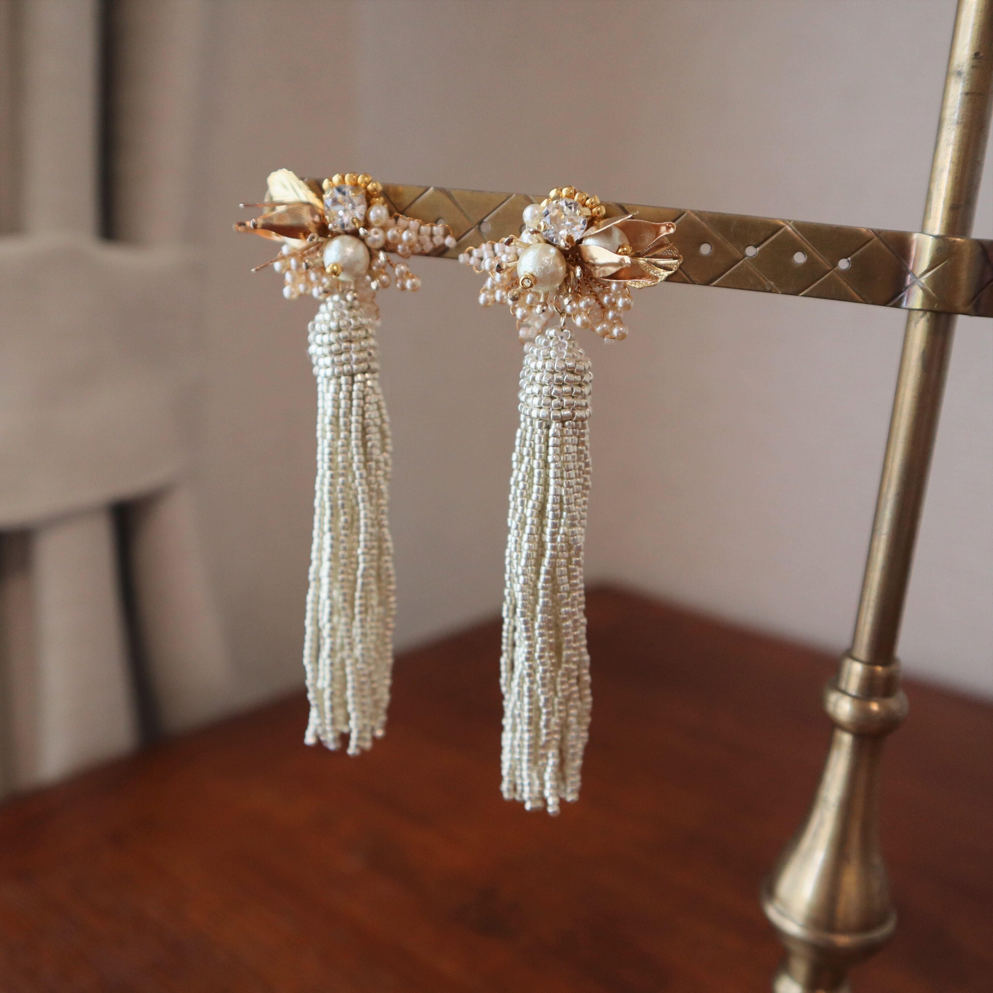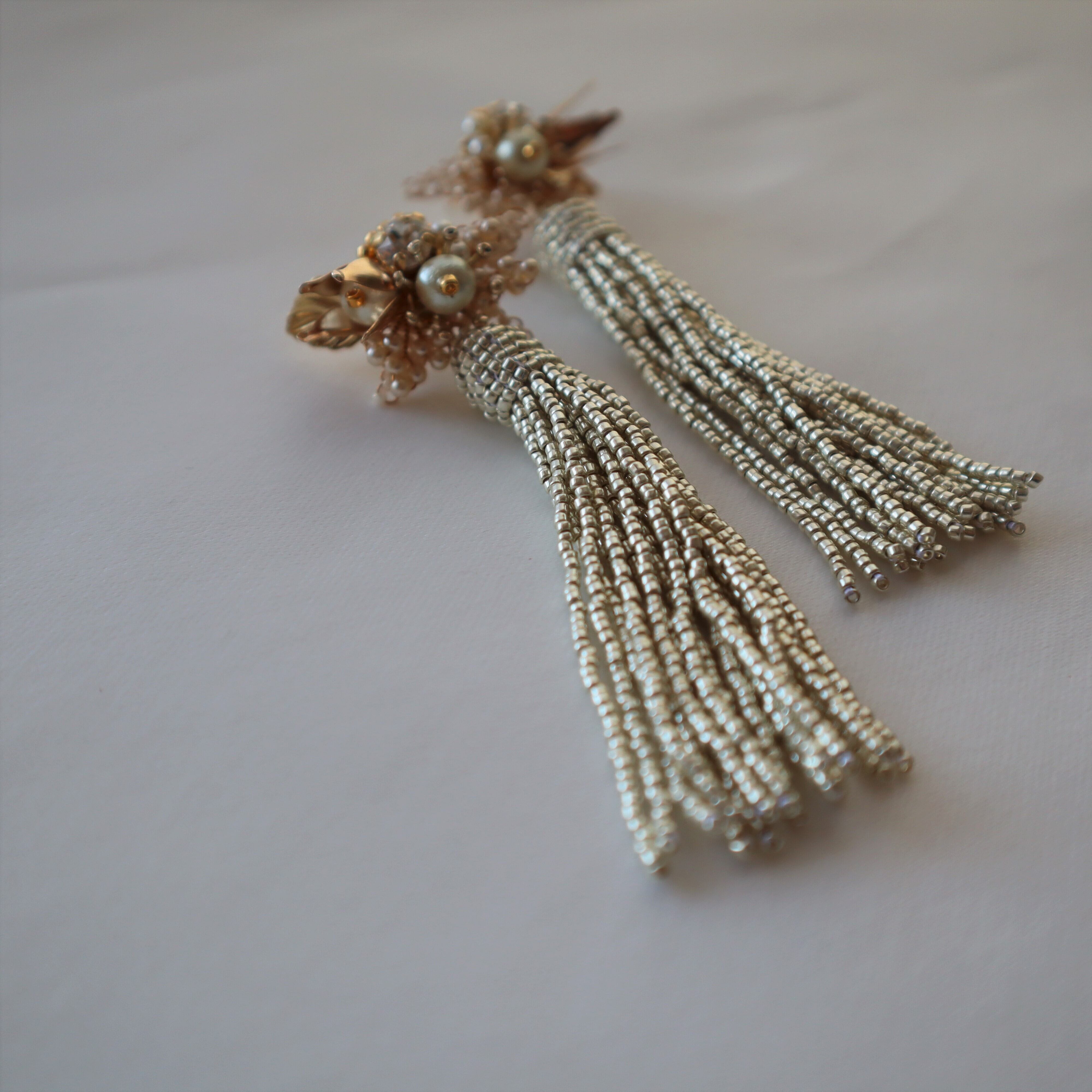 ビーズタッセルのビーズはホワイトシルバーカラーです