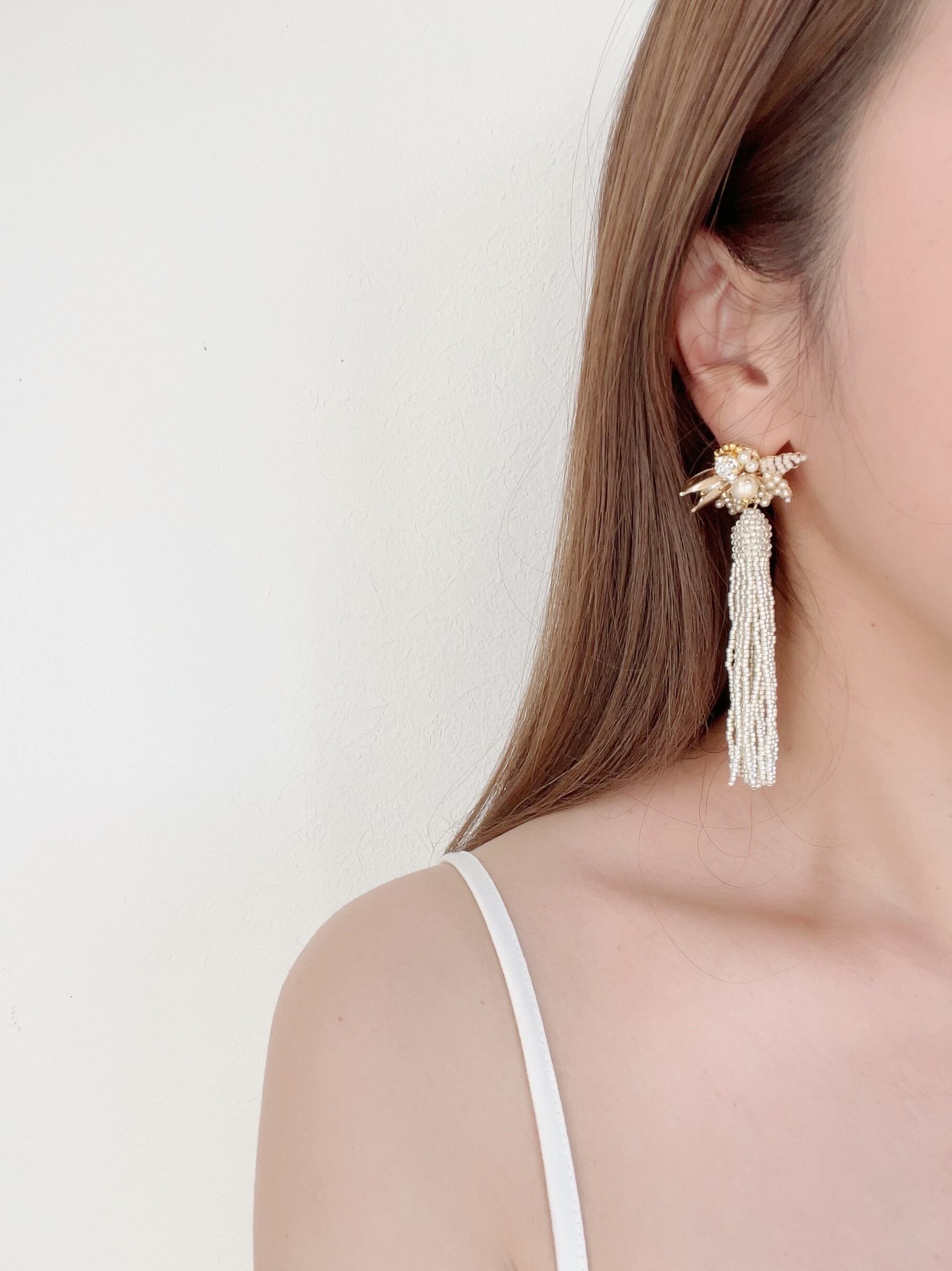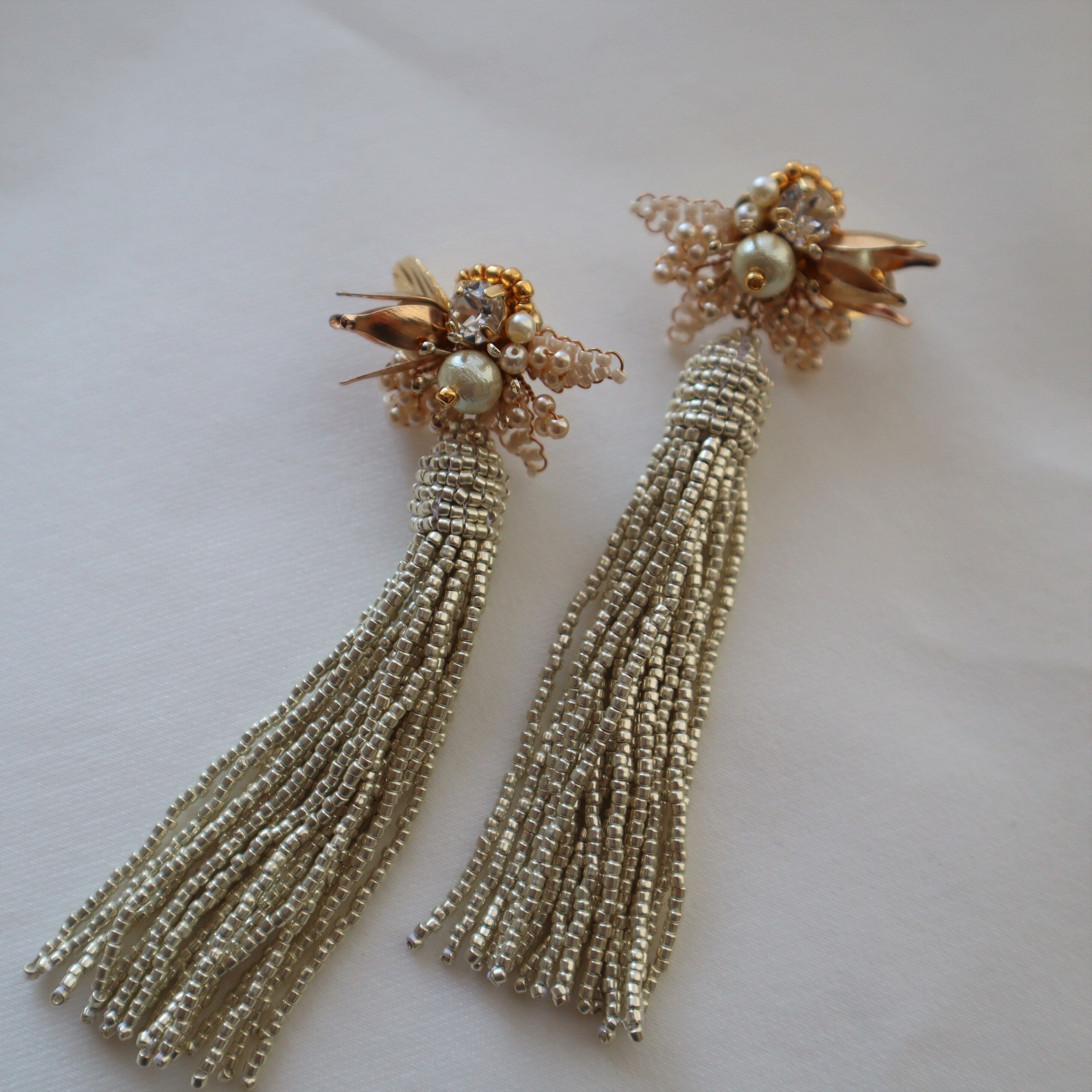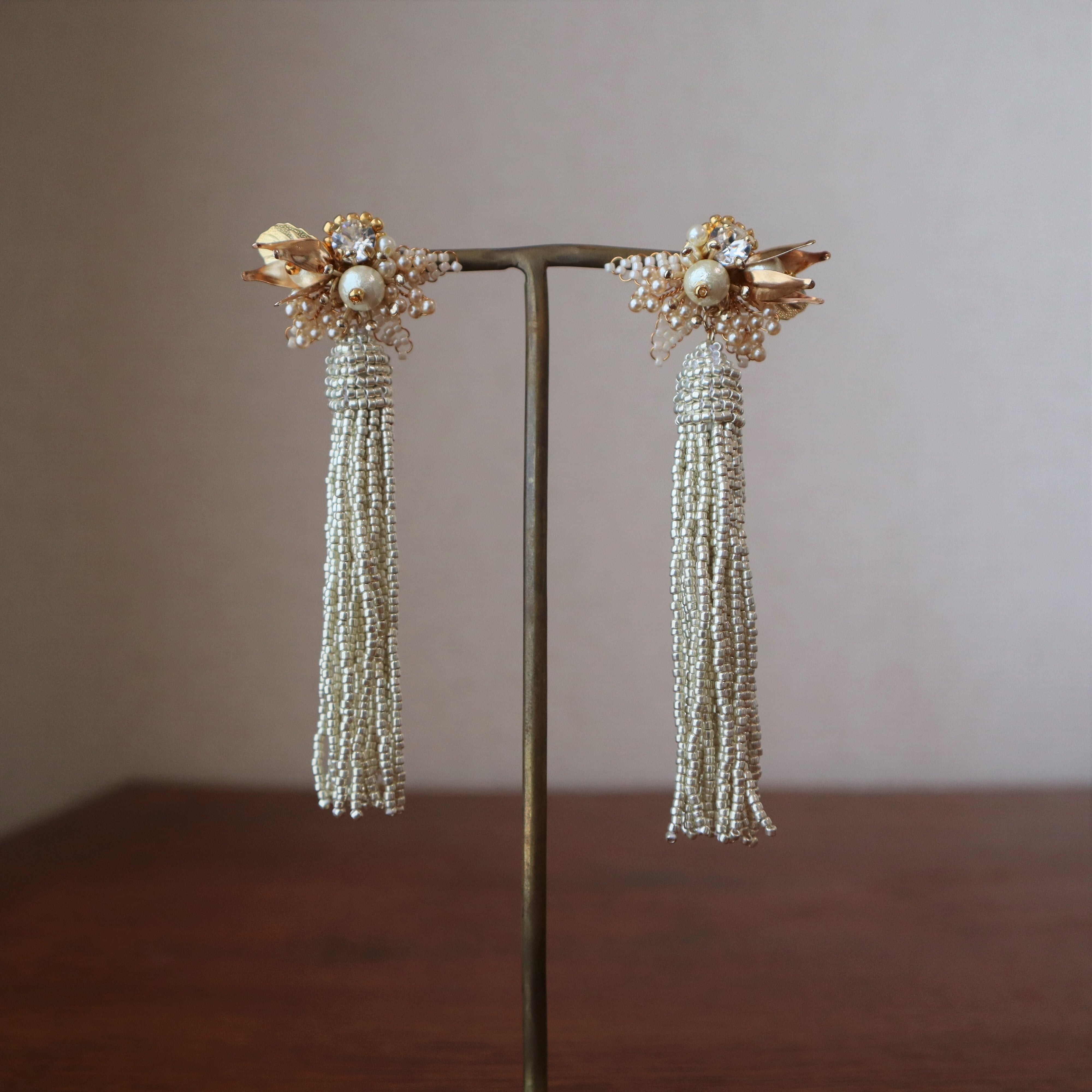 ビーズタッセルのビーズはホワイトシルバーカラーです