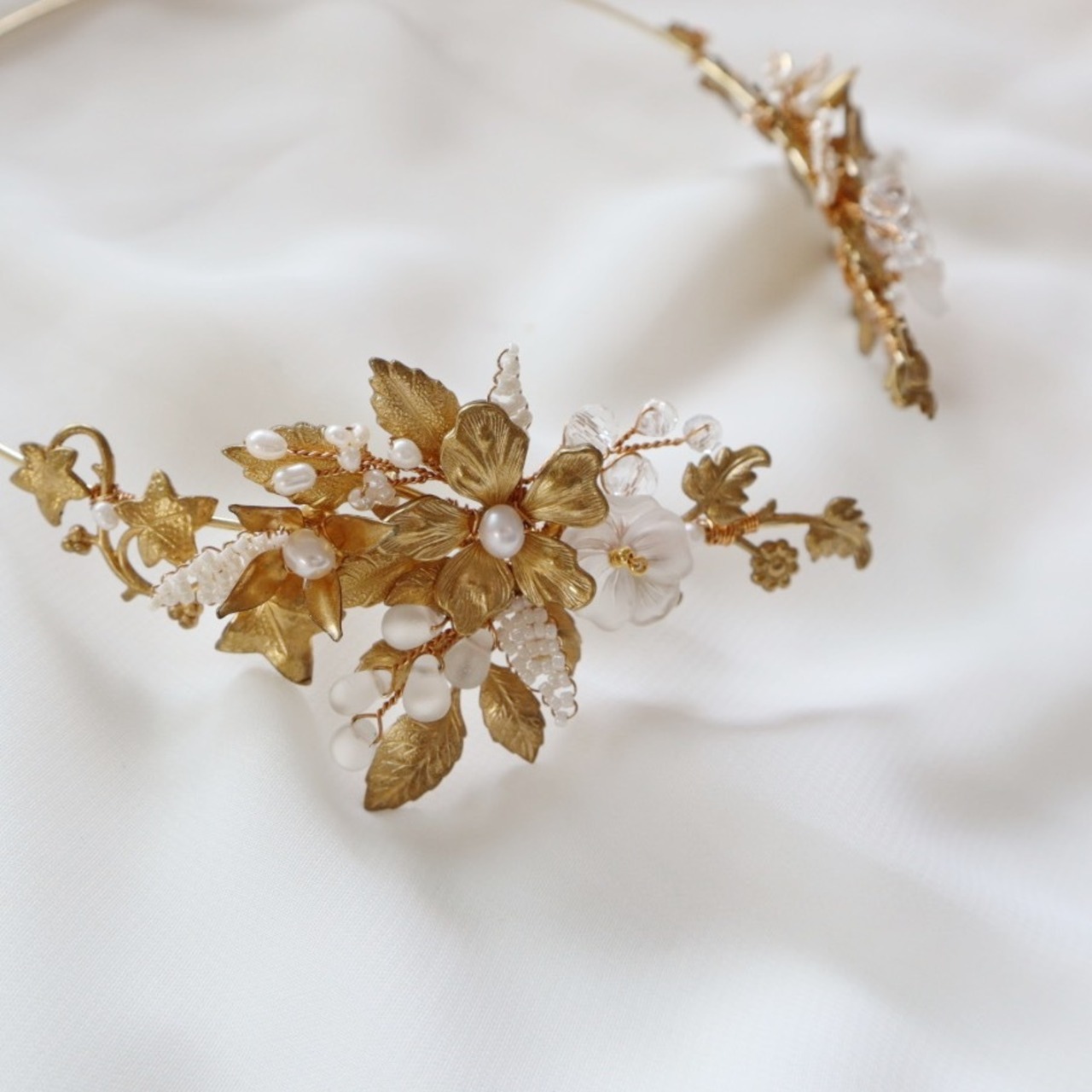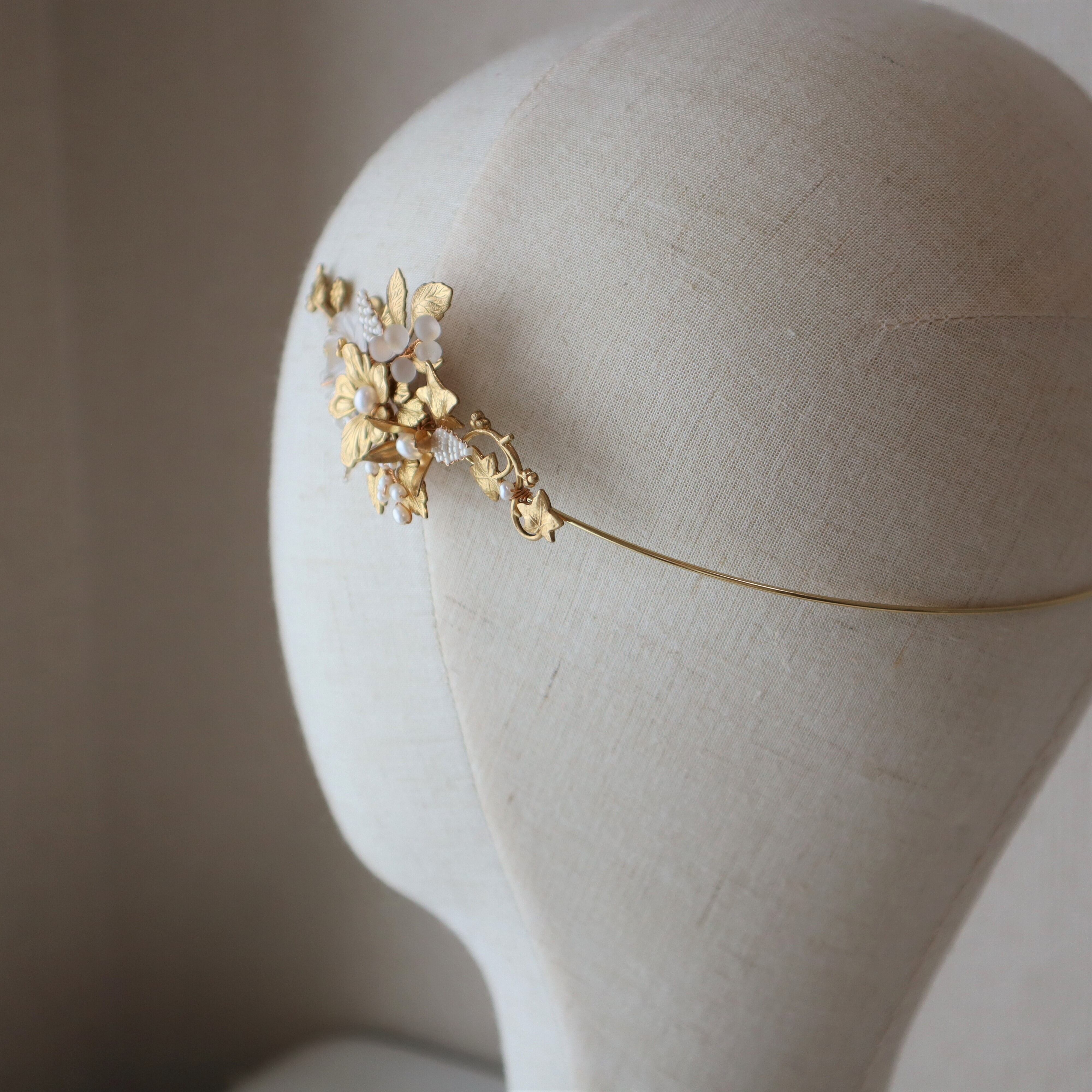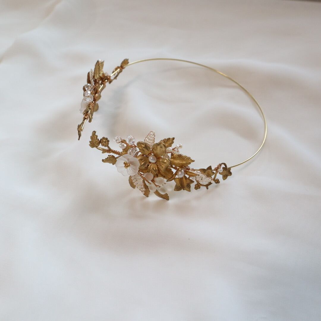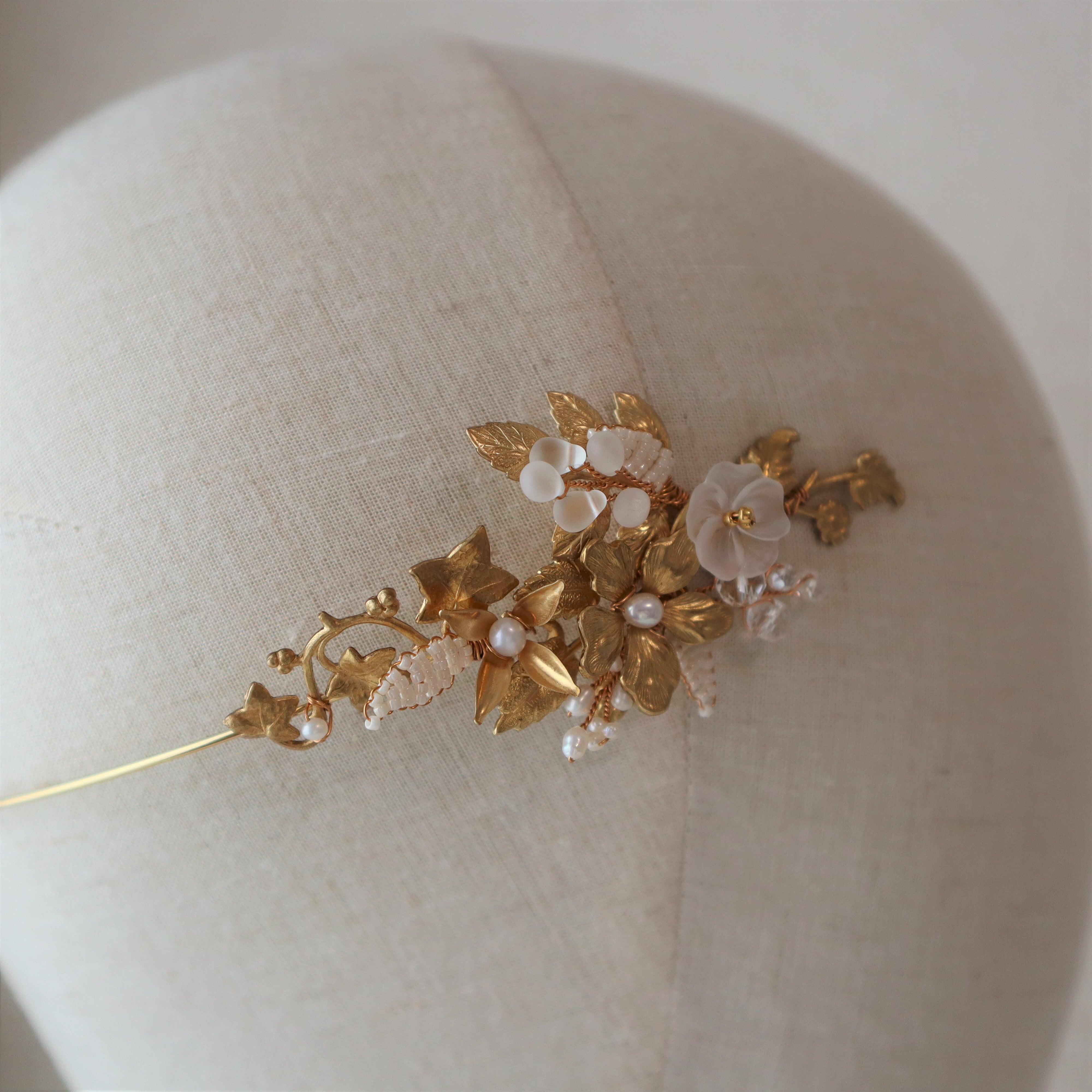 草花を束ねたようなモチーフのバックカチューシャ