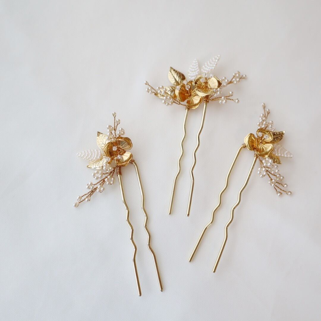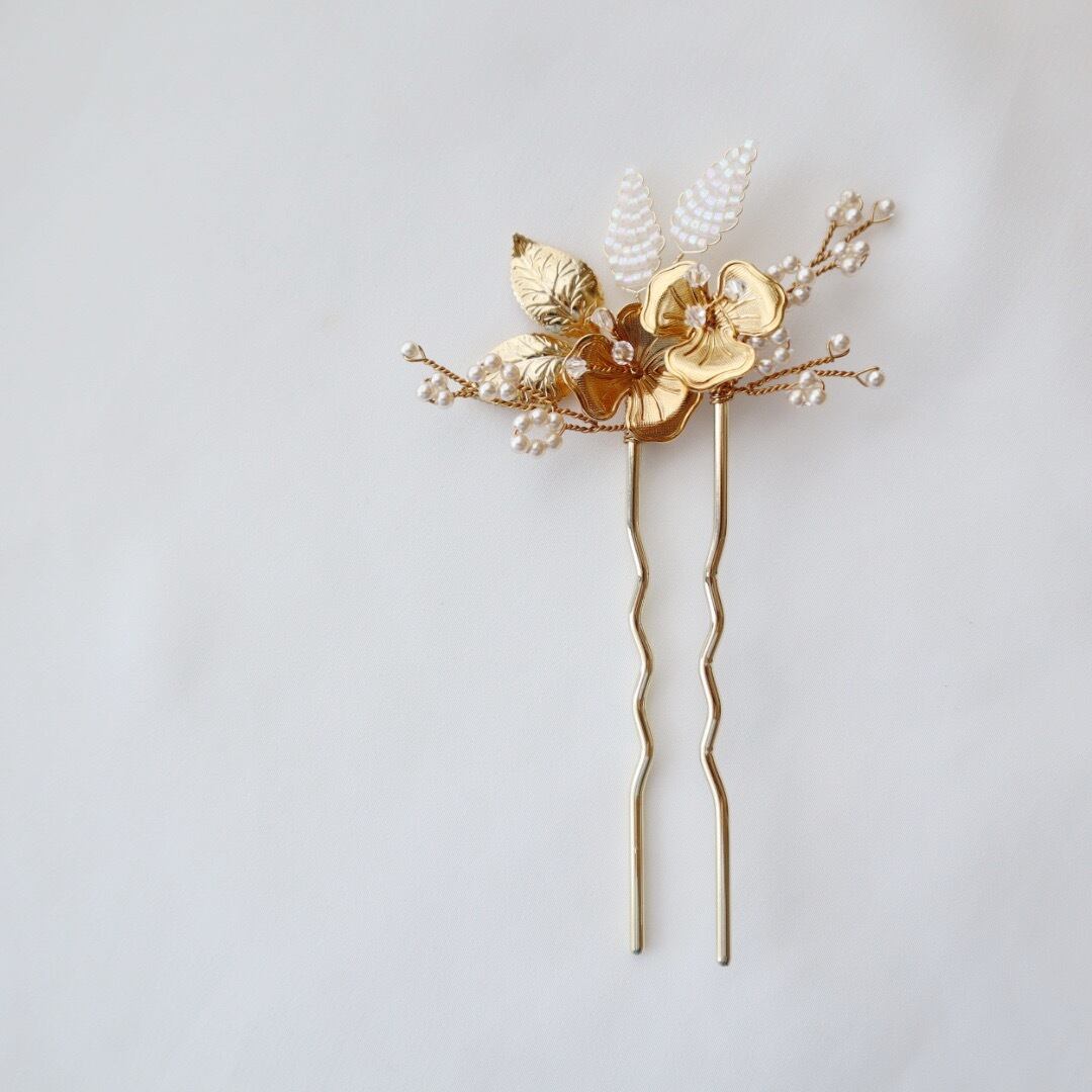小さなブーケのようにおつくりしたヘアアクセサリー
